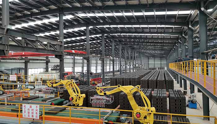 該項目位於南京江寧,是南京(jīng)目前規(guī)模較大的一處建築垃圾綜合處置廠,主要以工業固廢和工程渣(zhā)土為原料,生產成品磚。目前,從原料破碎到燒製成磚均(jun1)實現自動化流程,工業機器人成了“搬磚工”。現有的製磚(zhuān)生產線每年能消耗工業固廢和(hé)工程(chéng)渣土100萬噸。拆建垃圾廠房完全投產後,還可再消化拆建垃圾120萬-150萬噸,資源化利用率超過95%。再生產品可以用(yòng)於鋪路,也可以製成行道磚、盲道磚(zhuān)、透水磚等,真(zhēn)正讓建築垃圾“吃幹榨淨”。