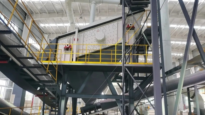【設備配(pèi)置】:VS振動篩分給料機、JC顎式破碎機、AF反擊式破碎機(jī)、YK建築垃圾專用圓振動篩、“亞飛(fēi)”輕物質分離器、除鐵器(qì)、皮帶機、除塵(chén)設備等(děng)。