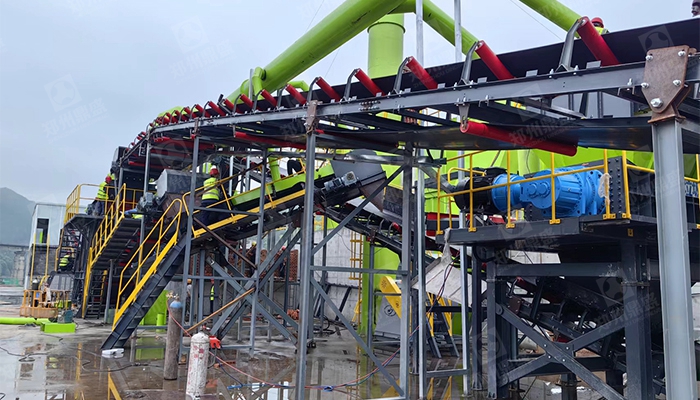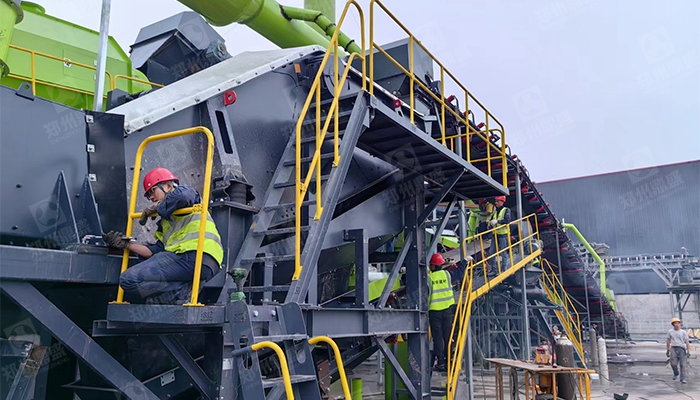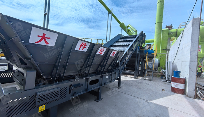 大件垃(lā)圾(jī)被放上鏈板運輸機,送到雙軸剪切式破碎機裏進行破(pò)碎處(chù)理。