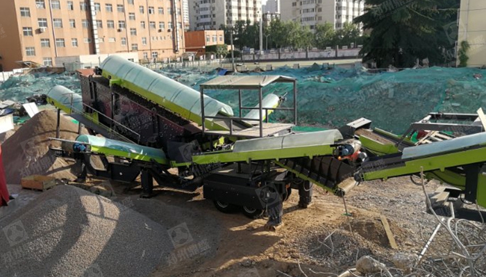 設備配置:建築裝修垃(lā)圾粉碎輪胎移動車、階梯複(fù)合篩輪胎移動車、臥式打散風選輪胎移動車