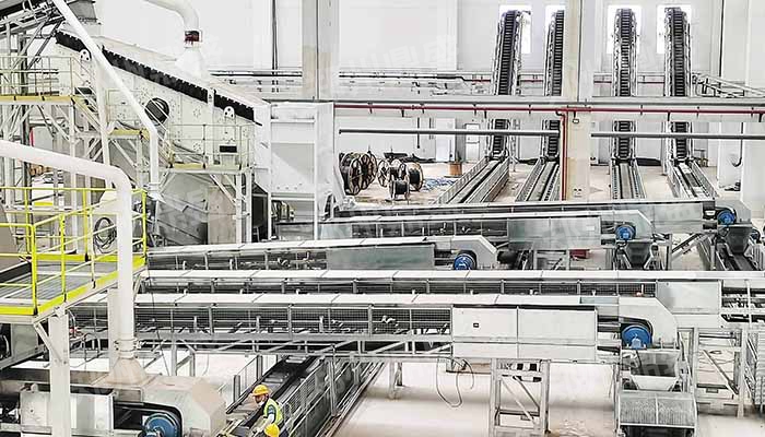 人工分選倉:工作(zuò)人員各自將目標物料比如塑料、紙張、金屬類、紡織物、電池、玻璃(lí)等分別投(tóu)入不同的料(liào)鬥。