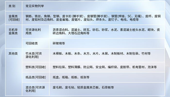 建築垃(lā)圾,是指(zhǐ)建設單位(wèi)、施工單位新建、改建、擴建和拆除各類建築物、構築物、管網、道橋等,以及居民裝飾裝修房(fáng)屋過程中產生的棄土、棄料和其他固體廢物。建築垃圾應當按照工程渣土(tǔ)、工(gōng)程泥漿、工程垃(lā)圾、拆除(chú)垃圾、裝修垃圾(jī)進行分(fèn)類收集、分類運輸、分類利用、分類處置,並應當堅持以末端處理為導向(xiàng),對建築垃圾進行細化(huà)分類處理(lǐ),進(jìn)一步推動建築垃圾資源化利用。