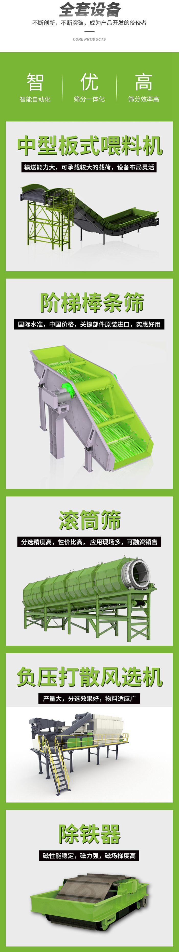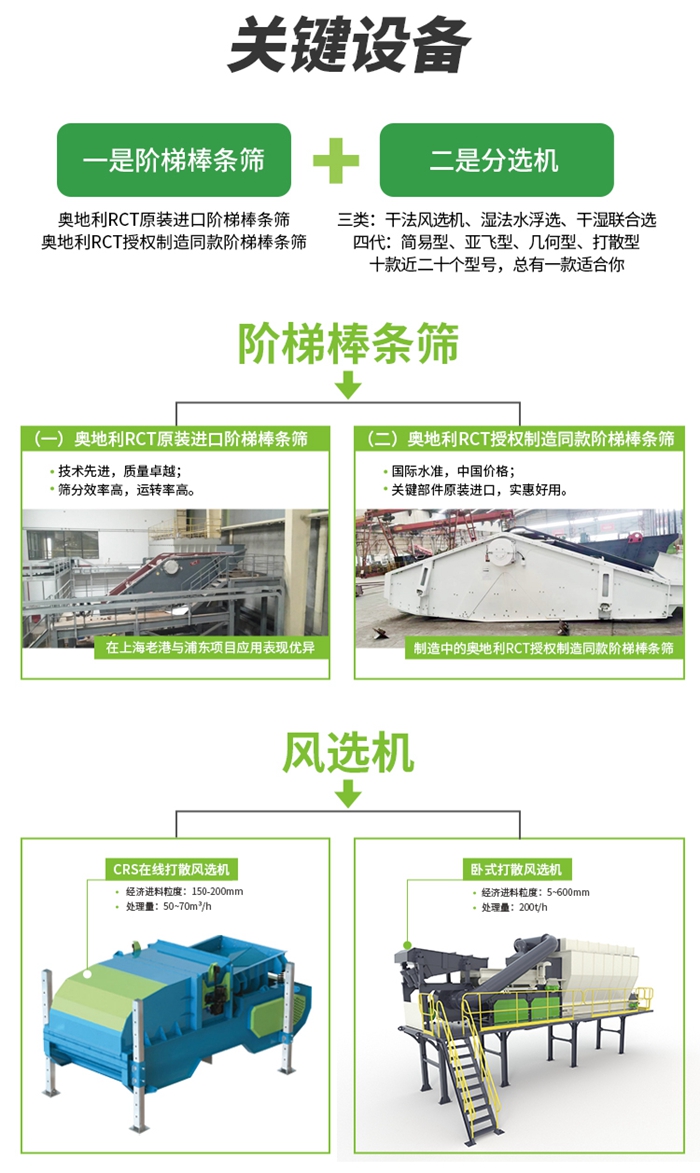 從工藝流程可以看出裝修垃圾分揀的關鍵設備是棒條篩和分選機,我們看下精东影业传媒公司推出的棒條篩和分選機(jī)種類。