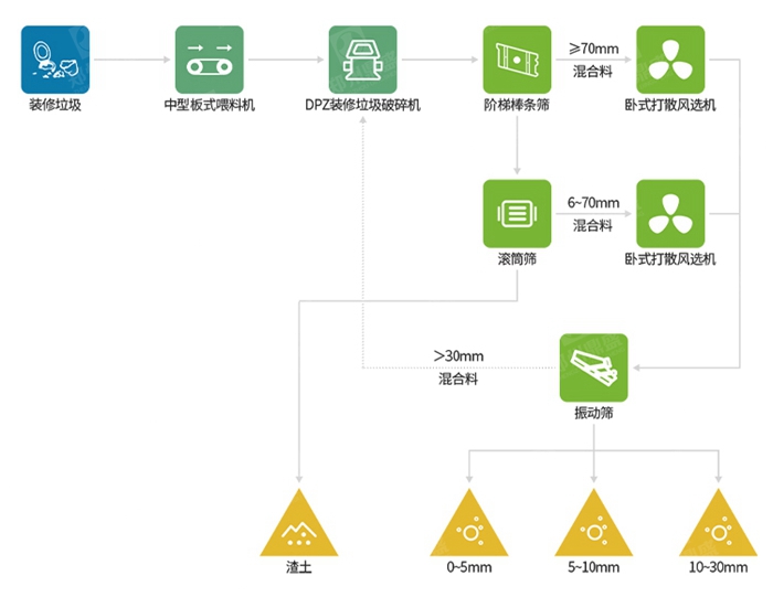 通過以上(shàng)方(fāng)案(àn)的實施(shī),可以(yǐ)實現對(duì)裝修垃圾的有效分揀和資源化利用,降低環境汙染,同時提高資源利用效率。