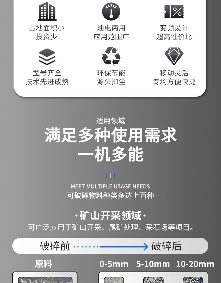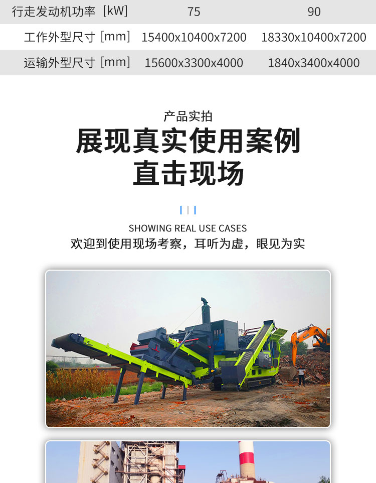 設備配置:TJC履帶式移動顎破(pò)站、WAF輪胎(tāi)式移動破碎站(zhàn)、WAS輪胎式移動篩分站