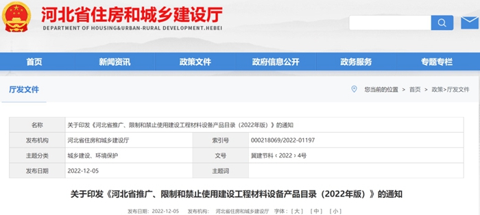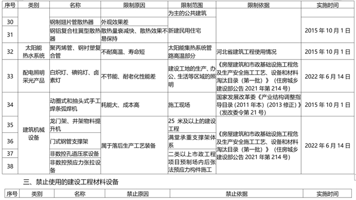 河北省推廣、限製和(hé)禁止使用建設工程材料設備(bèi)產品目錄(2022年版)