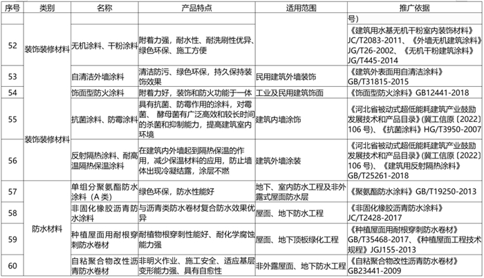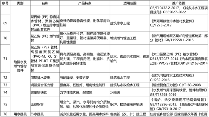 《目錄》由(yóu)推廣使(shǐ)用、限製使用和禁止使用三部分組成,共收集(jí)201種材料設備,其中推(tuī)廣部分114種(新列(liè)入42種)、限製部分38種(新列入12種)、禁止部分49種(新列入15種)。