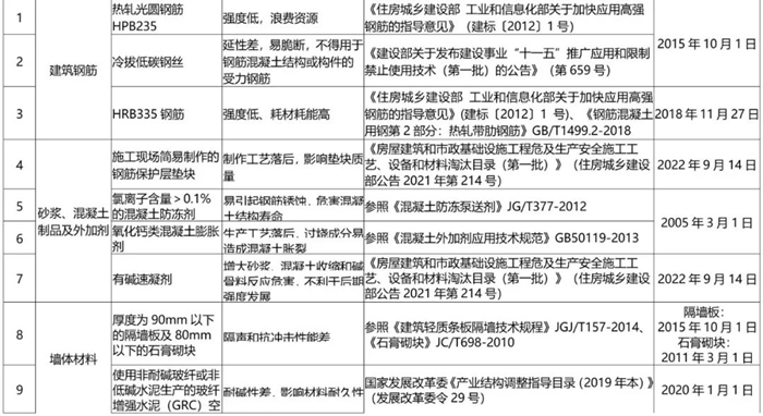 列入限製或禁止使用的材料設備,是社會關注度較高或工程使用中問題出現較(jiào)多,對工程質量、安全、節能、環保等影響較大的產品(pǐn),各工程建設單位不(bú)得違規使用。