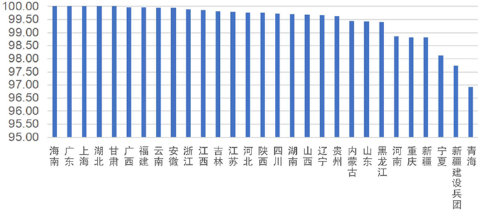 圖2:第一個履約周期各地區配額清(qīng)繳完成情況(kuàng)【注2:西藏自治區無(wú)符合納(nà)入條件的(de)重點排放單位:北京市、天津市、廣東省(不含深圳市)由於已參與地方碳(tàn)市(shì)場2019、2020配額發放(fàng)和清繳(jiǎo),不參與全國碳市場(chǎng)第一個履約周期配額分配和(hé)清繳。】