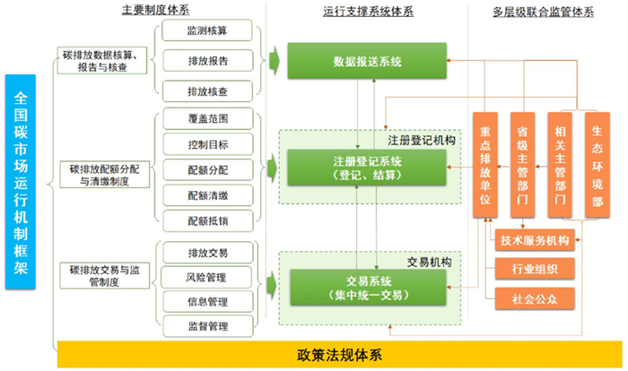 根據《碳排放權交易管理辦法(試行)》規定,由生態環境部製定全國碳排放權交易及相關活動的管理規則,加強(qiáng)對地方碳排放配額分配、溫室氣(qì)體排(pái)放報告與核查的監督管理,並會同(tóng)有(yǒu)關部門對全國(guó)碳排放權交易及相關活動進行監督管理和指導。省級生態環境部門負責在本行政區(qū)域內組織開展碳排放配額分配和(hé)清(qīng)繳、溫室氣體排(pái)放報(bào)告的核查(chá)等相關活動並進行監督管理。設區的市級生態環境主管部門負(fù)責配(pèi)合(hé)省級生態環境主管部門落實(shí)相關具體(tǐ)工作(zuò),並根據有關規定實施監督管理。重點排放單位報告碳排放數據,清(qīng)繳碳排放配額,公開(kāi)交易及相關活動信息,並接受生態環境主管部門的監督管理。全國碳市場通過(guò)市場機(jī)製形成價格信(xìn)號,引導碳減排資源的優化配置(zhì),從而降低全社會減排成本,推動綠色低碳產業投資,引導資金流動。