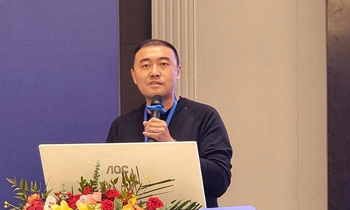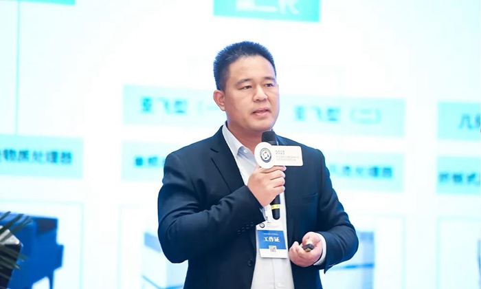 福建泉工股份有限公司營銷(xiāo)副總經(jīng)理郭基榕分享了《固廢製磚--綠色智(zhì)能裝備(bèi),築造美好(hǎo)城市》以先進製磚工藝開發多(duō)種透水磚新產品,表示其應用成果對破解天然石材困境,固廢的循環應用提供良好示範效益。